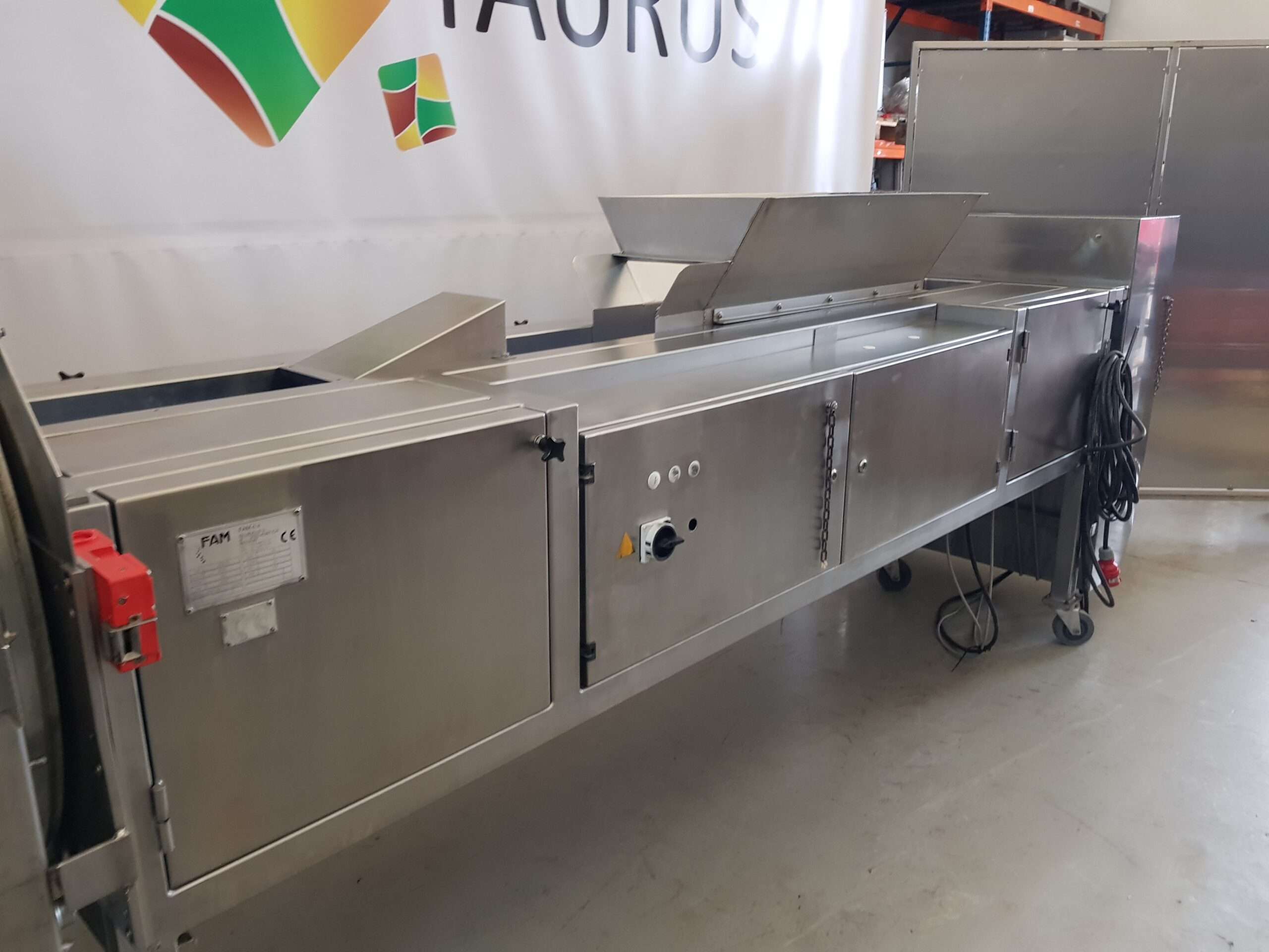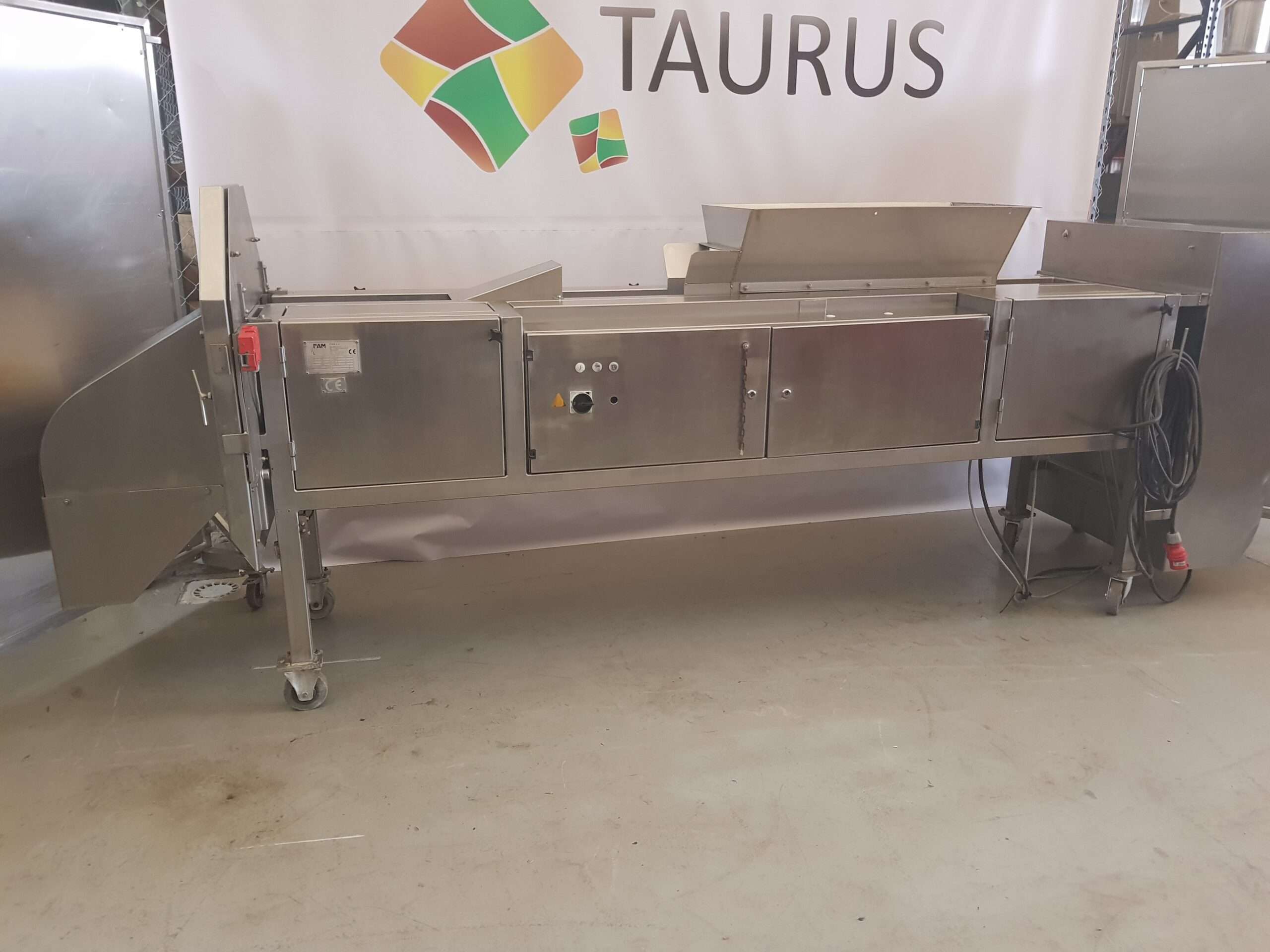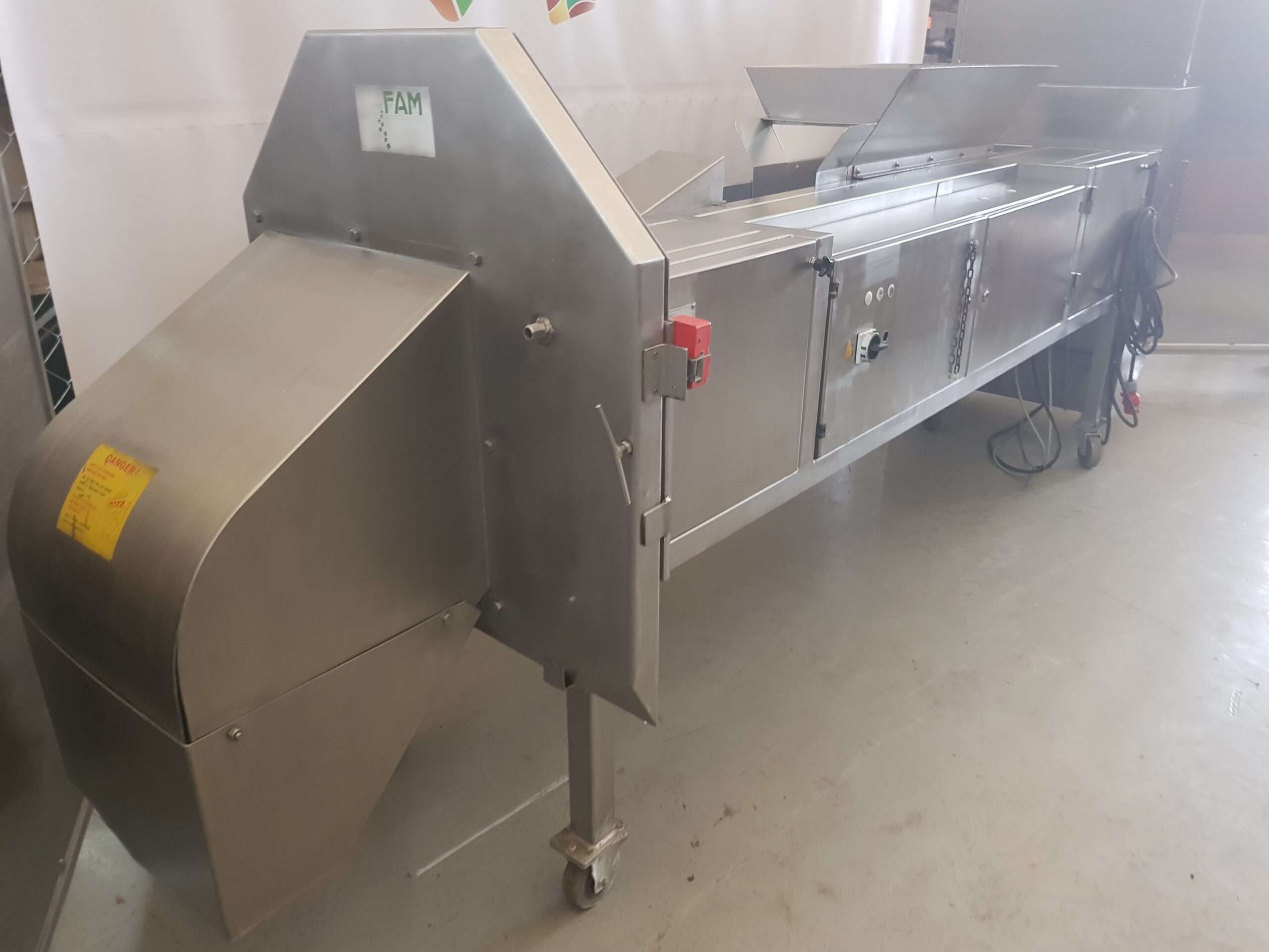 Krajalnica posiada lej wejściowy, regulowane nogi, szafkę sterowniczą.
